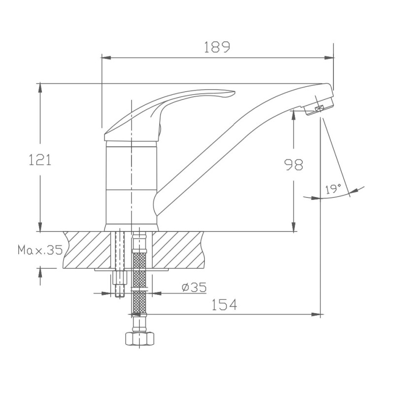 Комплектация: Смеситель, гибкая подводка