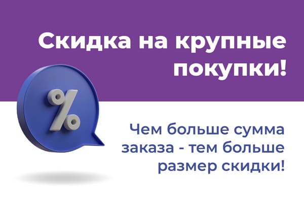 Добавьте в корзину товаров на сумму от 35 000 р. и получите скидку 3%, от 65 000 р. - 4%, от 95 000 р. - 5%!